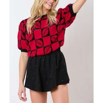 Women Y2k Puff Short Sleeve Cropped Sweaters Crewneck Slim Knit Pullover Tops 2024 Trendy Knitted T Shirts Blouse Red