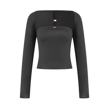 Women Y2k Square Neck T-Shirt Long Sleeve Lace Trim Crop Top Slim Fit Stretchy Blouse Top Aesthetic Clothes(Square 2pcs Black,Small)