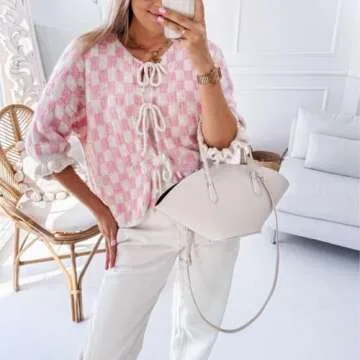Show more Introducing the exquisite Women Y2K Tie Front Cardigan Sweater, a true staple for anyone who adores fashion that embraces both elegance and comfort. Crafted from a quality polyester blend fabric, this cardigan offers a skin-friendly and breathable experience, ensuring you feel fabulous all day long. The unique color block checkered print combined with a tie front design not only accentuates a chic silhouette but also provides versatility, making it an ideal addition to your wardrobe.