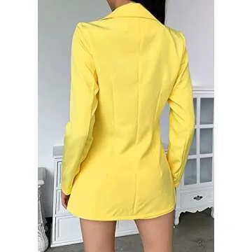 Womens 2 Piece Outfits Casual Long Sleeve Open Front Blazer and Shorts Suit Blazer Set Yellow