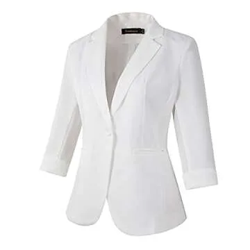 Show moreIntroducing the Womens 3/4 Sleeve Lightweight Office Work Suit Jacket Boyfriend Blazer, a perfect blend of elegance and comfort for the modern woman. Crafted with high-quality materials, this blazer brings a chic yet relaxed vibe to your wardrobe. Its soft fabric ensures all-day wearability, making it ideal for both office and casual settings. The 3/4 sleeve design provides a contemporary touch, allowing for easy layering over various outfits. Available in a timeless white shade, this blazer easily complements any ensemble while offering a polished look with minimal effort.