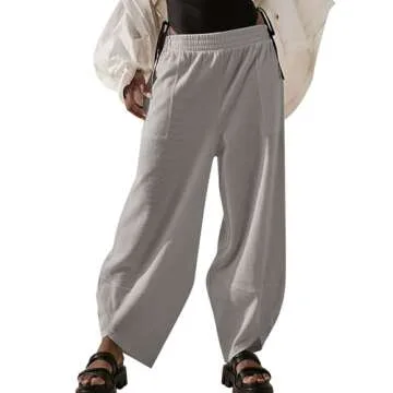 Womens Baggy Wide Leg Pants Casual Cotton Linen Elastic Waisted Loose Palazzo Harem Pants with Pockets Women's Linen Joggers Pants for Women Tall Pantalon Lino Mujer Grey Medium