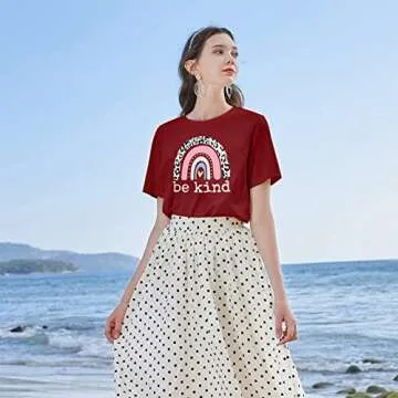 Womens Be Kind T Shirt Cute Graphic Blessed Shirt Funny Inspirational Teacher Short Sleeve Tees Tops Dark Red