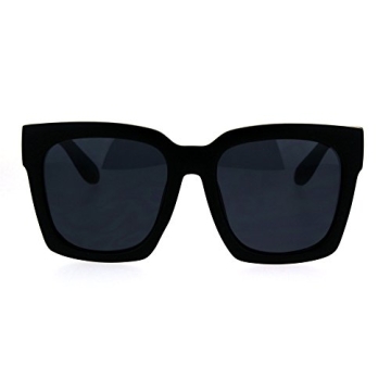 Womens Boyfriend Style Oversize Horned Rim Thick Plastic Sunglasses Matte Solid Black