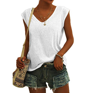 Womens Cap Sleeve V Neck T-Shirt Casual Loose Fit Basic Tshirts Tops