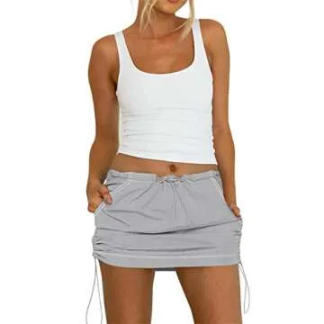Womens Cargo Mini Skirt Y2K - Casual Summer High Waisted Bodycon Pencil Ruched Skirts Side Drawstring and Pockets Gray S