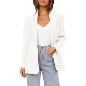 Elegant Women's Oversized Casual Blazer - Cream White Office Jacket
