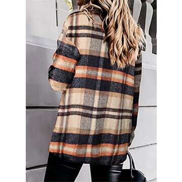 Womens Casual Oversized Long Sleeve Flannel Plaid Blouses Tops Button Down Jacket Orange X-Large