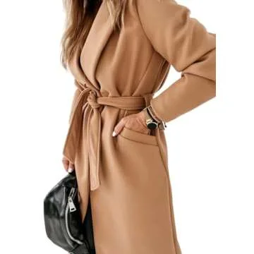 Womens Classic Coat Lapel Collar Open Front Belted Long Jacket