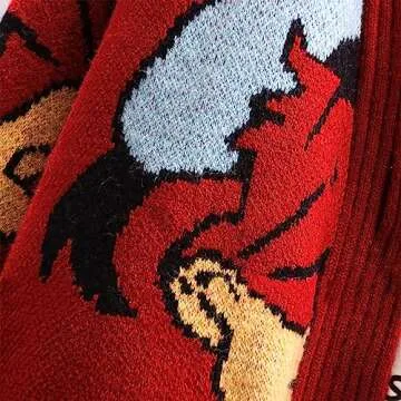 Womens Cute Embroidery Cartoon Duck Cable Knit Cardigans Sweater Button Down Slouchy Wool Blend Coat (XL, Red)