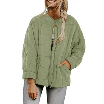 Womens Dolman Lightweight Quilted Jackets Zip Up Long Sleeve Stand Neck Warm Winter Outwears
