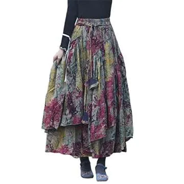 Show moreIntroducing the exquisite Women's Elastic High Waisted Aline Printed Floral Vintage Retro Pleated Maxi Long Skirt, a perfect blend of elegance and comfort designed to enhance the wardrobe of the modern woman. This stunning skirt is crafted from high-quality cotton linen fabric, offering not just a visual treat but also unmatched comfort. The fabric feels soft against the skin while providing warmth, making it a superb choice for those chilly spring, fall, and winter days. Featuring a full elastic waistband, belt loops, and a self-drawstring, this versatile piece promises a unique fit tailored to your body type without skimping on style.