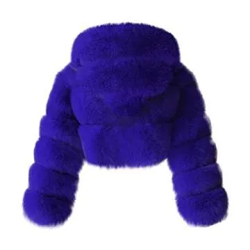 Womens Faux Fur Coat Jacket Open Front Crop Tops Solid Color Shaggy Hooded Cardigan Long Sleeve Fashion Warm Outwear Memela