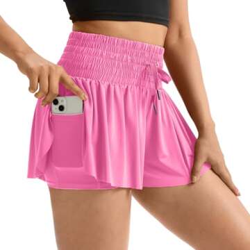 Womens Flowy Athletic Shorts Gym Yoga Workout Running Sweat Spandex Tennis Skirts Butterfly Skorts High Waisted with Pockets Cute Teen Girls Trendy Clothes Summer Outfits(Hot Pink,m)