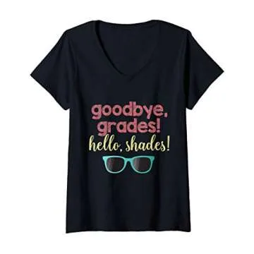 Womens Goodbye Grades Hello Shades Summer Break Teacher Tee V-Neck T-Shirt