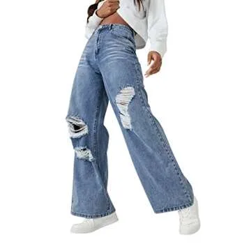 Show moreIntroducing the Womens High Waisted Wide Leg Baggy Jeans for Girls - the vintage-inspired 90s Y2K pants that are making a comeback in style and comfort! These casual, loose ripped denim trousers promise not only to elevate your wardrobe but also to provide a flattering fit suitable for various body types. Crafted from high-quality, 100% cotton fabric, these wide-legged jeans ensure ultimate softness and comfort, making them perfect for daily outfits. The classic denim material maintains its shape beautifully, so you can wear them year after year.