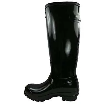 Show more Introducing the Women’s Hunter Original Adjustable Back Gloss Rain Snow Wellington Boot in classic black – a staple piece that combines ultimate functionality with stylish design. These boots are crafted from durable, vulcanized natural rubber, ensuring they withstand the elements while maintaining a sleek, glossy finish. With a breathable textile lining, they provide exceptional comfort and protection against abrasion, making them perfect for those long walks with your dog, as highlighted by many satisfied customers.