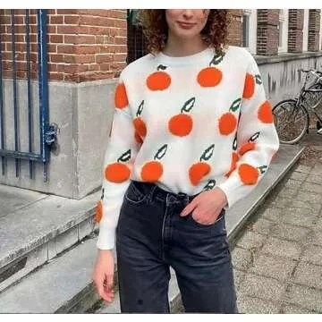 When it comes to uniqueness, the Womens Knitted Orange Sweater stands out from its competitors. Many market alternatives offer basic designs and limited color choices. In contrast, this sweater’s vibrant fruit print adds a whimsical touch while still being versatile enough for styling. Moreover, the soft knit material and flattering fit are often overlooked in comparable products, making this sweater a more comfortable and fashionable option overall.
