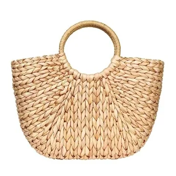 Womens Large Straw Bags Beach Tote Bag Handwoven Hobo Bag Summer Beach Bag Straw Handbag (Brown)
