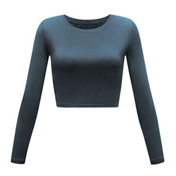 Womens Long Sleeve Crop Tops Basic Teen Girl Clothes Casual Cute Yoga Shirts Layering Slim Fitted Workout T-Shirt Charcoal