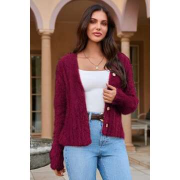 Womens Open Front Cardigan Fashion Button Down Knit Outwear Coats Rose Red M