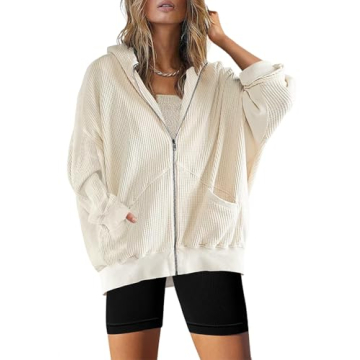 Show moreThe **SAUKOLE Women's Oversized Waffle Knit Tops Zip Up Hoodie** is your go-to fusion of style, comfort, and functionality. Designed for the modern woman, this versatile oversized jacket combines a chic, trendy aesthetic with practical features that suit various occasions. Tailored with **premium quality** materials, the waffle knit fabric not only provides a unique texture but also ensures optimal breathability, making it **ideal for those warm days**. This zip-up hoodie is perfect for layering, hitting a sweet spot between snug and sophisticated without comprising your comfort, making it suitable for any activity from casual outings to a cozy night in.
