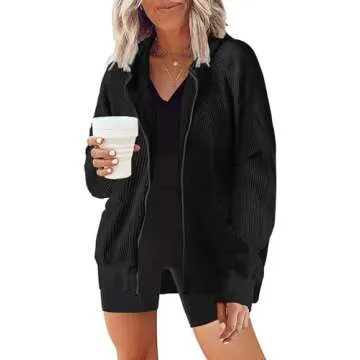 SAUKOLE Women's Oversized Waffle Knit Zip Up Hoodie - Comfort Meets Style