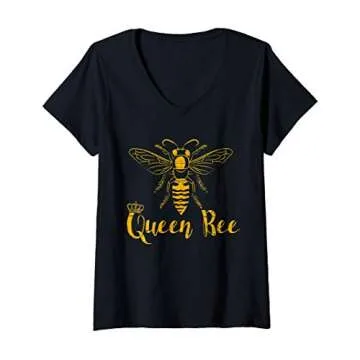 Womens Queen Bee I Beekeeper Beekeeping V-Neck T-Shirt
