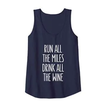 Show moreIntroducing the ultimate addition to your workout wardrobe: the Womens Run All The Miles Drink All The Wine Tank Funny Running Tank Top. This tank top perfectly marries humor with functionality, making it ideal for the active woman who enjoys running and good wine alike. The tank features a classic fit, ensuring you get both comfort and style whether you’re out on a morning jog or attending a casual get-together with friends. Made from lightweight, breathable material, it keeps you cool and dry, so you can focus on what truly matters: running those miles and enjoying your favorite drink.