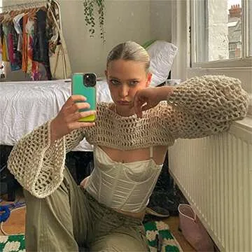 Step up your fashion game with our Women's See Through Fishnet Shirt, a stunning long sleeve crochet knit crop top that perfectly embodies the Y2K aesthetic. This top features intricate mesh and hollow-out designs that not only enhance breathability but also add a touch of daring elegance to your wardrobe. Made from soft, stretchy materials, this cover-up is ideal for layering over swimwear or pairing with your favorite jeans and skirts. Embrace the vintage vibe while staying effortlessly...