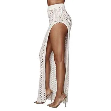 Womens Sexy Crochet Knitted Long Skirt Bathing Suit Cover Ups White High Waist Maxi Skirt Beach