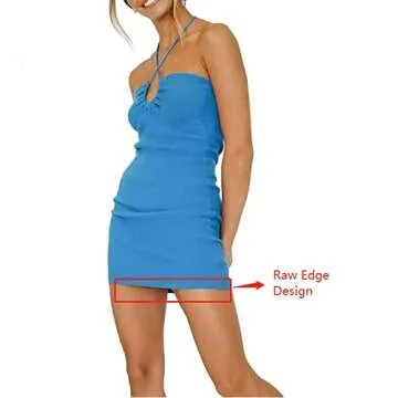 Womens Sexy Halter Neck Crisscross Mini Dress Y2K Blue Cutout Lace Up Bodycon Dress Tropical Beach Dresses(E-Blue,Medium)