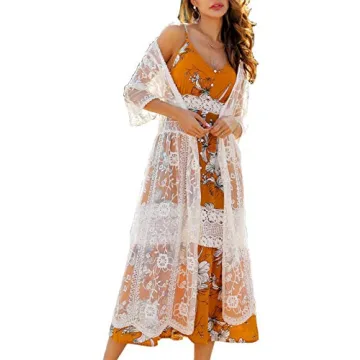 Show moreIntroducing the ultimate addition to your summer wardrobe: the Womens Sexy V Neck White Lace Crochet Kimono. This stunning longline cover-up is not just a fashion statement but a versatile piece that complements a variety of summer looks. Crafted with meticulous attention to detail, it features intricate floral embroidery, making it the perfect blend of style and elegance. The lightweight sheer lace crochet fabric ensures that you stay comfortable and cool while exuding a feminine charm that is perfect for any occasion.