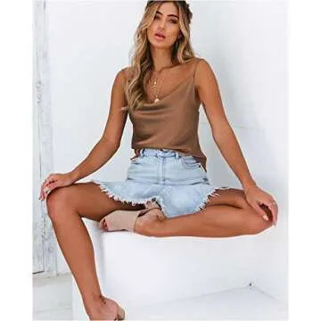 Womens Silk Spaghetti Strap Camisole Sexy Adjustable Satin Slip Soft Vest Tank Top for Women Khaki