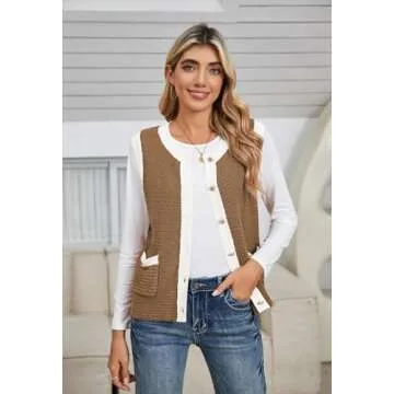 Show more Discover the ultimate blend of style and comfort with this charming women's button-down vest. Crafted from high-quality fabric, it offers a luxuriously soft touch and a lightweight, breathable feel that's perfect for any season. The vest features a classic crew neck design, with a sleeveless profile that leaves room for stylish layering. The color block edge adds a trendy twist, while the two functional front pockets bring practicality to such chic attire. The ribbed closure enhances the overall appeal, creating a truly casual yet refined look.