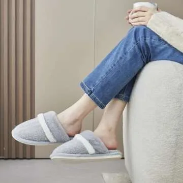 Womens Slippers with Cozy Memory Foam Soft Warm Slip On House Shoes Anti-Skid Rubber Sole Creative Gifts for Women Mom Size 7 8 Light Grey