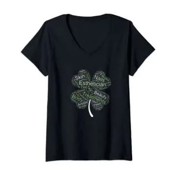 Womens St. Patrick's Day Shamrock Esthetician V-Neck T-Shirt