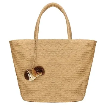 Handmade Straw Woven Tote Bag - Versatile Summer Beach Handbag with Pom Poms
