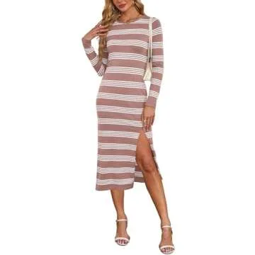 Show moreIntroducing our stunning Womens Sweater Dress Long Sleeve Fall Dresses 2024, a versatile and stylish addition to your wardrobe! With its beautiful Dusty Pink hue and classic striped design, this dress is not just a piece of clothing but a statement. Crafted from high-quality, breathable, and stretchy fabric, this dress promises to keep you warm and cozy during the colder months while ensuring maximum comfort against your skin. Its perfect blend of style and functionality makes it an essential piece for any fashion-savvy individual.