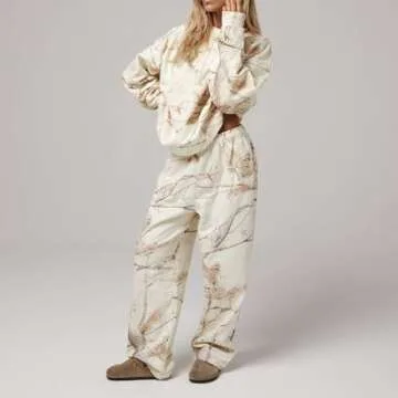 Womens Sweatsuits 2 Piece Set Camo Hoodie Long Sleeve Crewneck Camo Sweatshirt Wide Leg Sweatpants Two Piece Fall Outfits Pine Print Casual Matching Lounge Sets Track Suits Y2k Workout Clothes