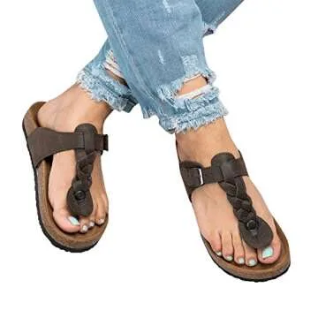 Womens T-Strap Flat Sandals Flip Flops Wide Woven Cute Comfort Buckle Casual Summer Shoes