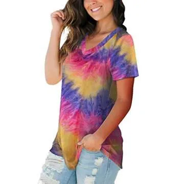 Womens Tee Shirts Short Sleeve V Neck Basic Tops Summer HOM Tie-Dye Tunic Tops M