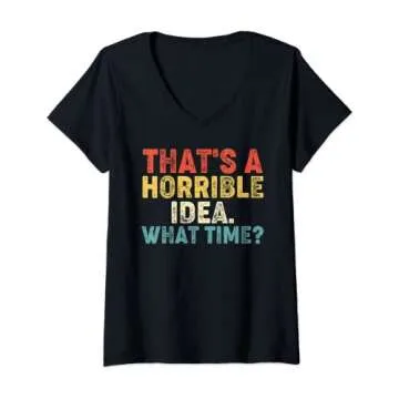 Womens That's A Horrible Idea. What Time? Funny V-Neck T-Shirt