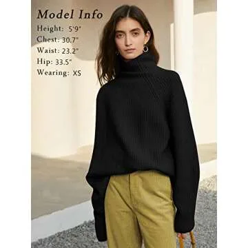 Show moreIntroducing the Womens Turtleneck Oversized Cozy Sweaters, the perfect blend of style, comfort, and versatility for your autumn and winter wardrobe. Crafted from a premium blend of 42% acrylic, 28% polyamide, and 30% polyester, this sweater promises a luxuriously soft and skin-friendly touch that keeps you warm without compromising on comfort. The unique turtleneck design beautifully frames the face, while the asymmetrical long sleeves provide a dash of modern flair, making each piece truly distinctive.