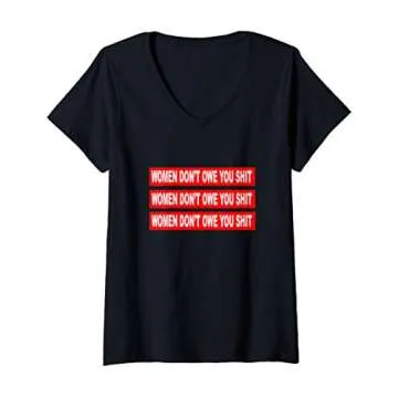 Best Occasions to Use This Gift: The "Women Don't Owe You" V-Neck T-Shirt is not just a fashion statement; it's perfect for a variety of events where you can proudly showcase your beliefs.