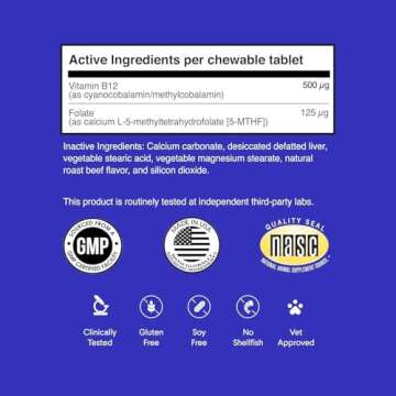 Wonder Paws B12 Supplement for Dogs – Vitamin B-12 for Dogs of All Ages, Sizes & Breeds – Vitamin B12 for Dogs as Superior Methylcobalamin, Cobalamin & Folate (5-MTHF) – 90 Beef Flavored Chewables
