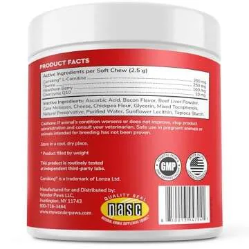Wonder Paws Cardio Support for Dogs – Cardiovascular Chews Heart Health, Circulation, Energy & Weight Management - with L-Carnitine, Hawthorn Berry, Coenzyme Q10 & Taurine for Dogs – 90 Soft Chews
