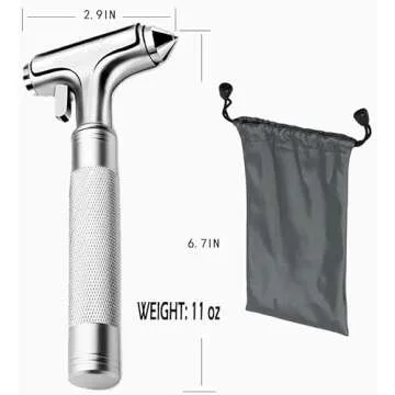 Show moreIntroducing the WONDER POINT Emergency Hammer, an essential and robust 3-in-1 car safety tool designed for every driver, providing unparalleled peace of mind and protection during emergencies. This premium version of the emergency hammer combines a compact design with a substantial weight, ensuring easy handling without compromising on strength. Crafted from polished aluminum alloy, the hammer features a sharp stainless steel blade and a fireproof body, making it a reliable companion for any situation. Its ergonomic shape and nonslip handle not only offer a firm grip but also maintain a safe distance from shattered glass, making it suitable for all users.