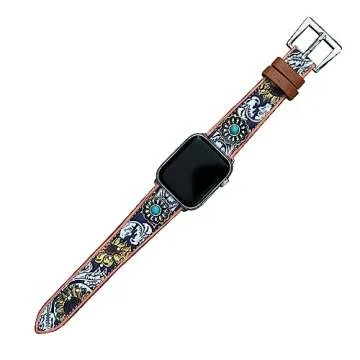 Show more This stunning watch band is the epitome of Western fashion flair, designed specifically for the Apple Watch, offering both style and comfort. Made by Wonderent, a trusted US-based seller, this band is available in two sizes: Large to fit Apple Watch 42mm, 44mm, and 45mm, and Small tailored for 41mm, 40mm, and 38mm models. Whether you're sporting Series 1 through Series 9 or the SE, we've got you covered. Perfectly crafted for wrists measuring from 6.5 to 8.0 inches, this watch band combines durability with an exquisite aesthetic.