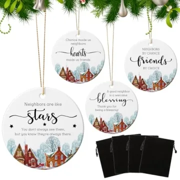 Wonderjune 4 Pcs Neighbor Gifts Ceramic Ornaments for Christmas